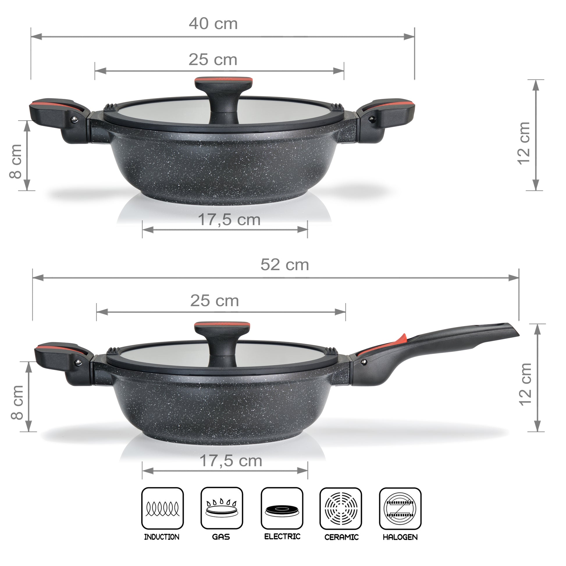 Linnuo® Premium-Line Aluguss Schmorpfanne mit abnehmbaren Griffen und Deckel 24 cm